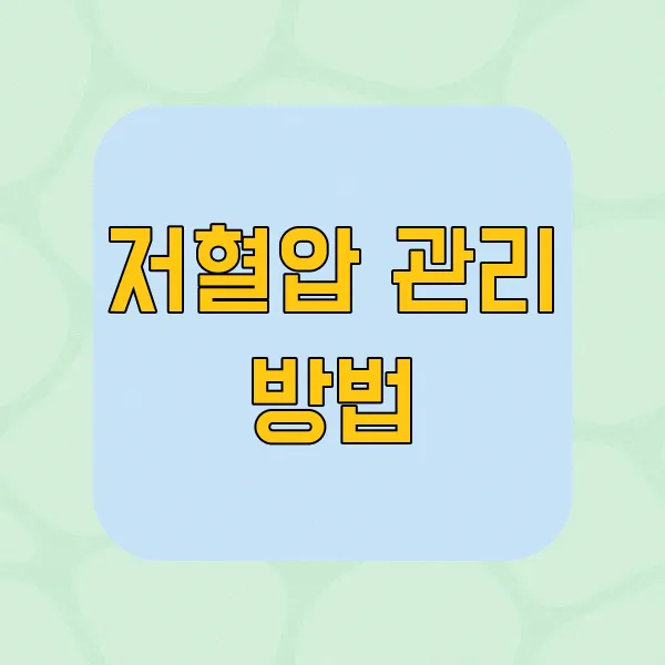 저혈압 관리 방법