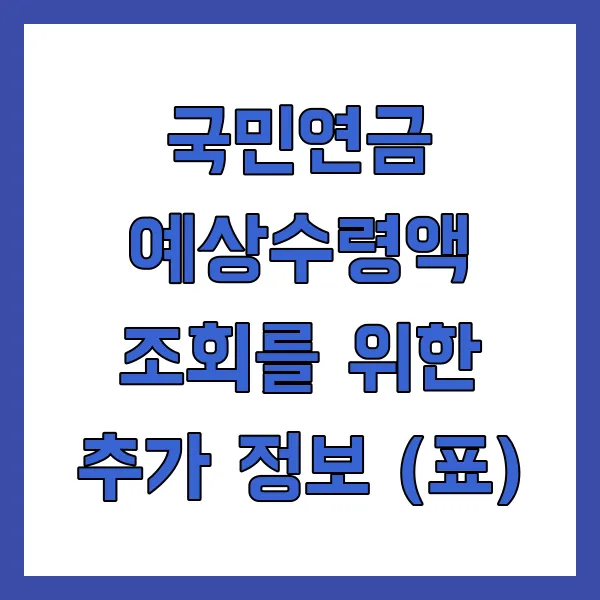 국민연금 예상수령액 조회를 위한 추가 정보 (표)